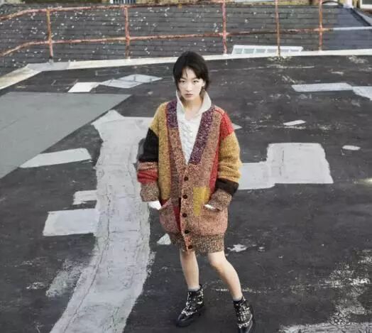 不管用力过不过猛,这件毛衣还是很美的对不对~不过好像最近穿毛衣出镜的女星们都不是这样带点仙气的款,反而很接地气……比如周冬雨,和吴亦凡一起亮相秀场的这件oversize羊毛开衫,走起了可爱中性风,男友力十足,又有点邻家小妹妹的感觉。