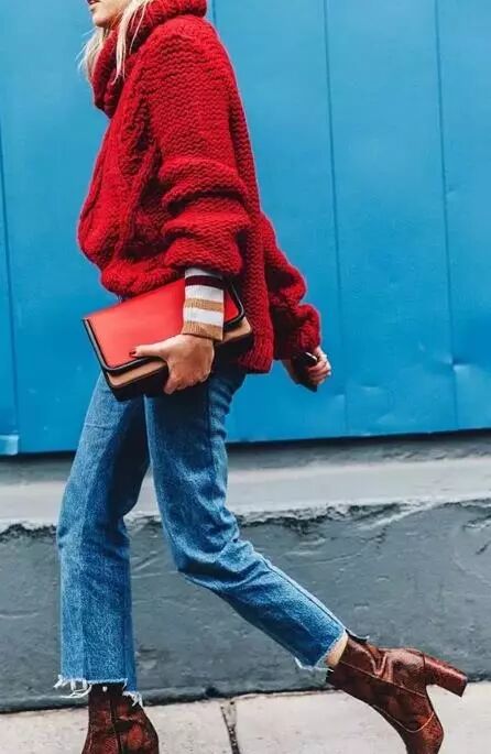 宽松的毛衣最能打造慵懒的法式优雅风格,展现毛衣本来的魅力,搭配靴子或裤子还是显瘦显高的利器。不过小个子要慎重穿搭,可以适当加一条腰带~