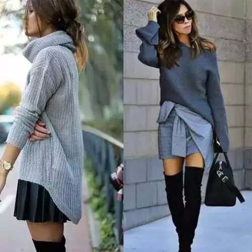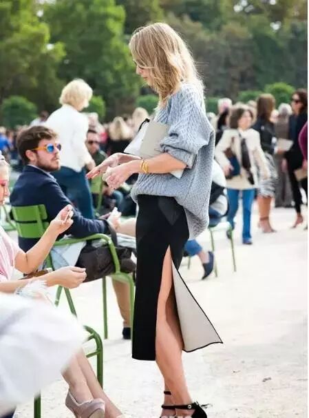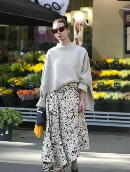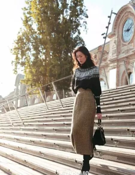 毛衣搭配半裙更是小粗腿星人的救星,百褶裙、裹身裙都是可以选择的单品之一,oversize的款更是用来搭配裙子的必胜法宝,帅气的感觉和优雅的感觉混搭在一起,简直不能再诱人!