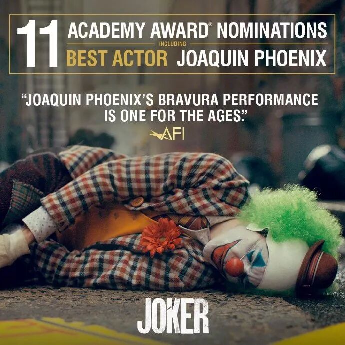 入围最佳影片、最佳导演、最佳男主角、最佳剪辑、最佳原创配乐等11项大奖的《小丑》会是本次奥斯卡的最大赢家吗?