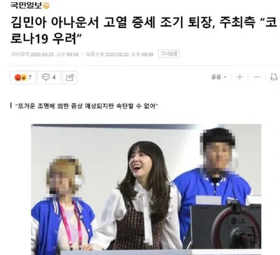 而且在金玟我被发现有发烧的症状后,主持人金玟我刚刚还出席了今天第一场比赛的赛后采访,当时他采访了KT战队的上单Ray以及中单Kuro,没想到才刚过仅2个小时金玟我就出现了发烧的情况,如果金玟我小姐姐确诊的话,那么LCK大部分选手都将被隔离,这也很有可能代表着后续LCK的比赛将会被延期。而如果说主持人被确诊肺炎,那么韩国网友也要承担一定的责任。此前韩媒记者就由于戴口罩被韩国网友写作文批评,有部分韩国网友仍然以道德绑架的形式认为戴口罩是不尊重选手的行为....what?