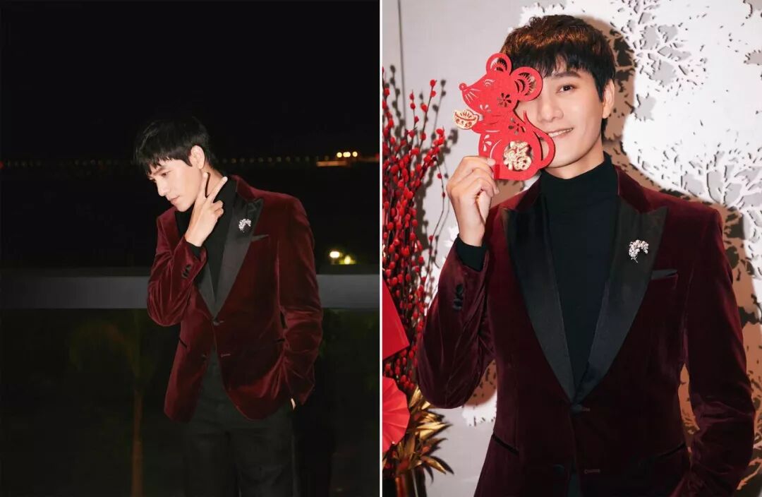 同样,陈坤依然帅得棱角分明,身穿BOSS 2020早春系列勃艮第色丝绒礼服西装,崭新的“齐刘海儿”发型,减龄又可爱!