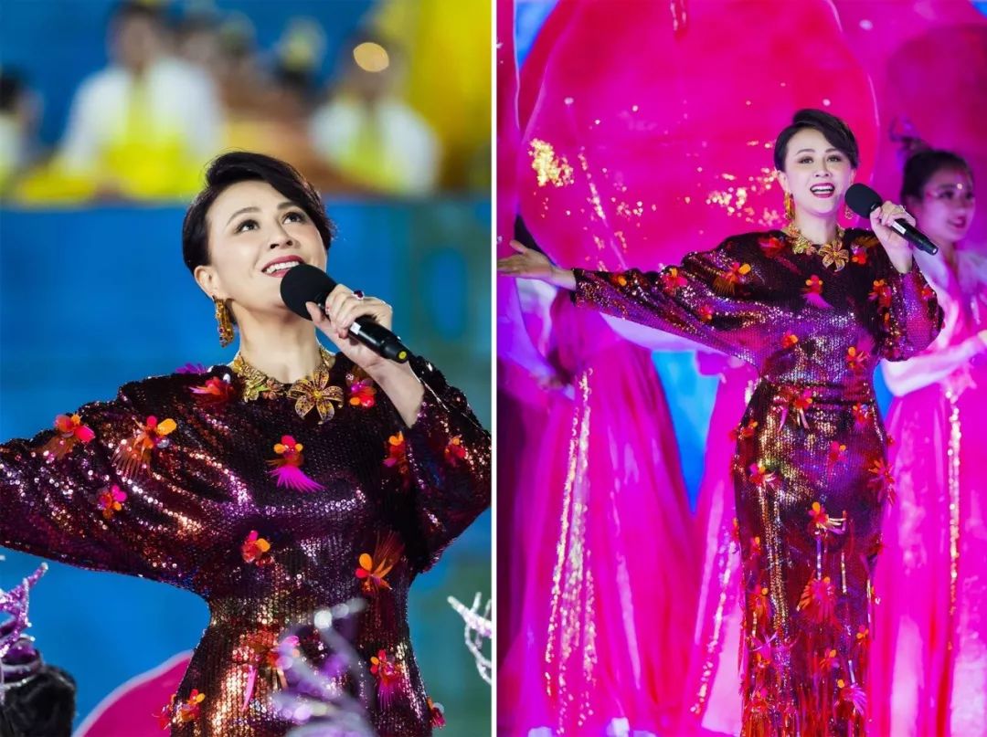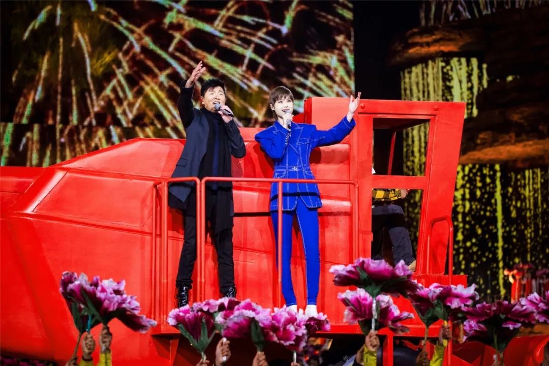 李宇春身着Balmain2020春夏系列,与孙楠在黄河之滨郑州演唱专为本届春晚创作的脱贫攻坚主题歌曲《幸福长流母亲河》。