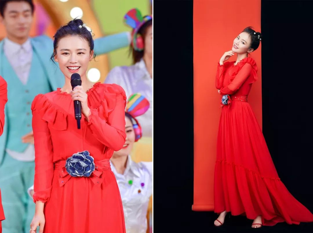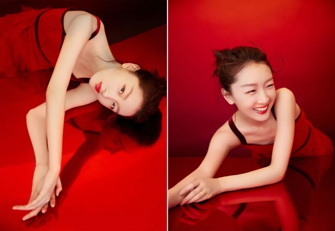 周冬雨还是那么灵动,来自Marchesa Notte的红色吊带裙,让她看起来更加飘逸清新。