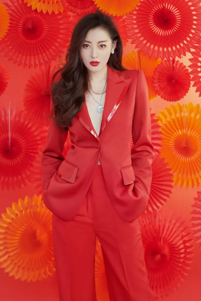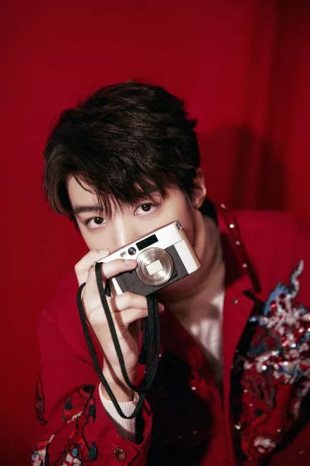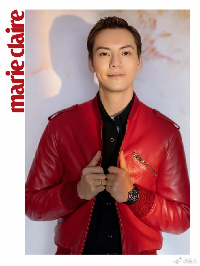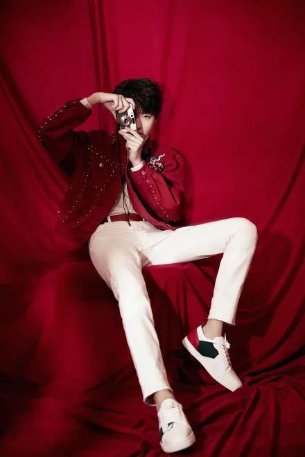 朱一龙身着红色西服,举手投足间摩登有型,彰显绅士风度。
