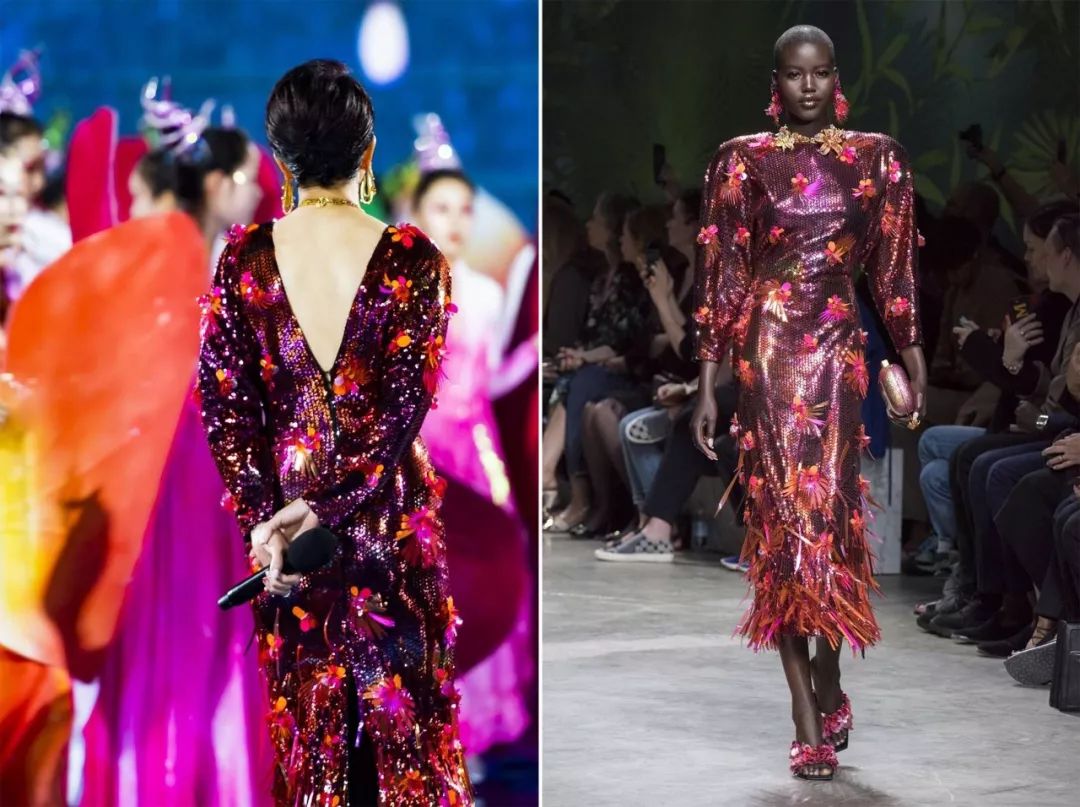 最惊喜的是刘嘉玲演绎的Versace 2020 春夏秀场连身裙。