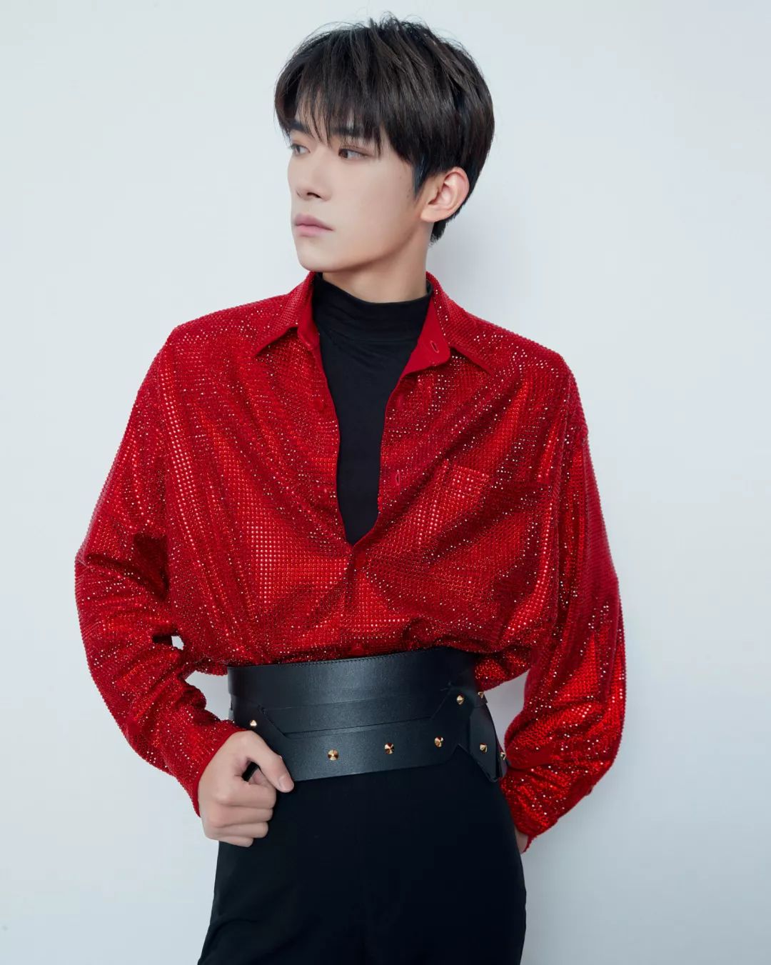 这件施华洛世奇的满钻上衣,Vivienne Tam黑色皮质腰封凸显千玺弟弟的优越比例。迸发的少年感充盈屏幕,这个舞蹈我给满分!