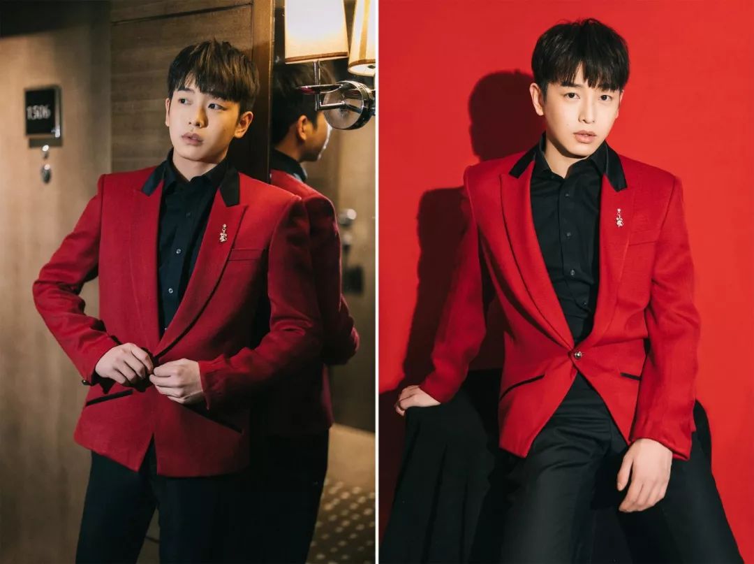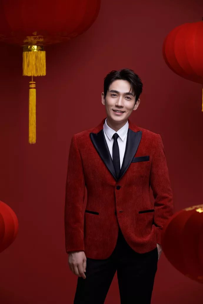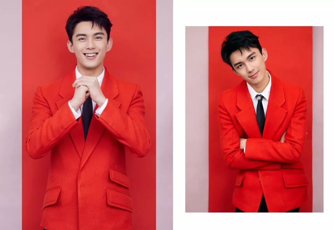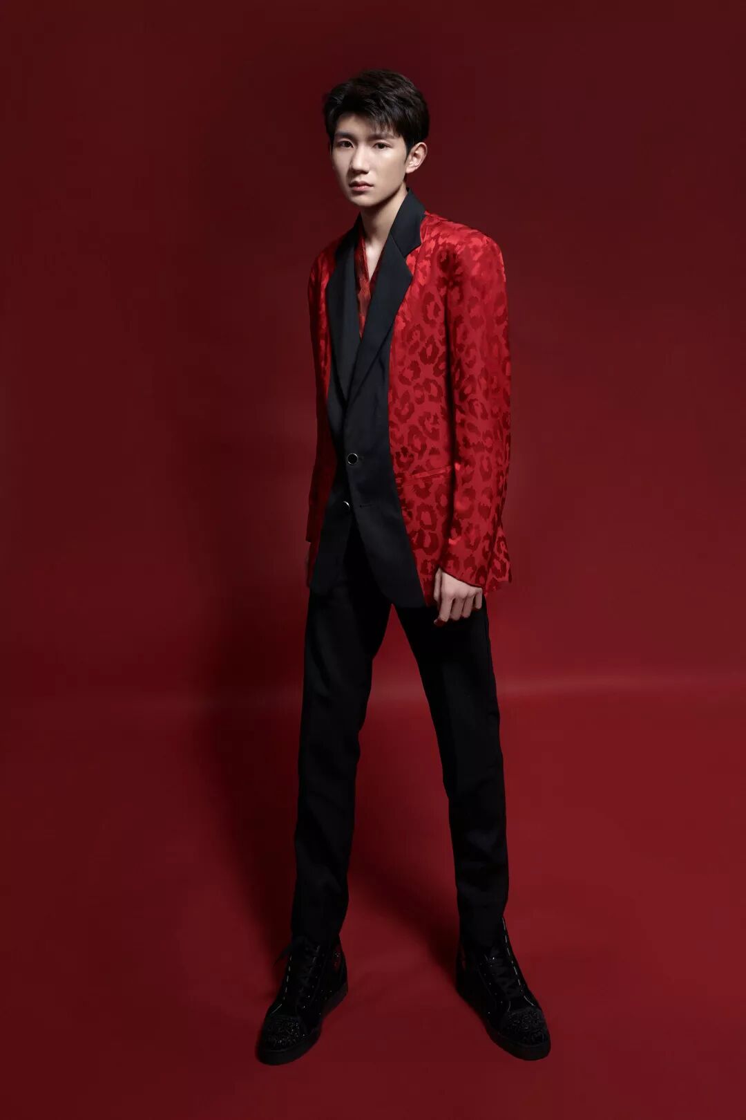 王源身穿“过年红”廓形西装,拼接黑色条纹,清爽简约,展现灼灼青年风采。