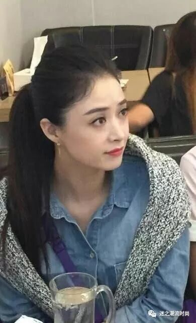 蒋欣一些比较成熟的造型其实都是简约款式的风格,像这样牛仔衬衫搭配着一个针织裳,披着当披肩。