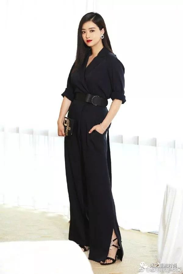 蒋欣时尚风格还是非常多的,而且穿上黑色的衣服的确显瘦,穿着衬衫配上半身皮裙,或者是穿着连体的裤子像这种非常有垂感的衣服造型在整个人的风格上面都很美艳。深色的衣服果然是显瘦的利器呀!最重要的是腰带配的好。
