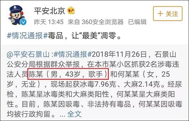 昨天,娱乐圈爆大瓜:陈羽凡吸毒被抓。