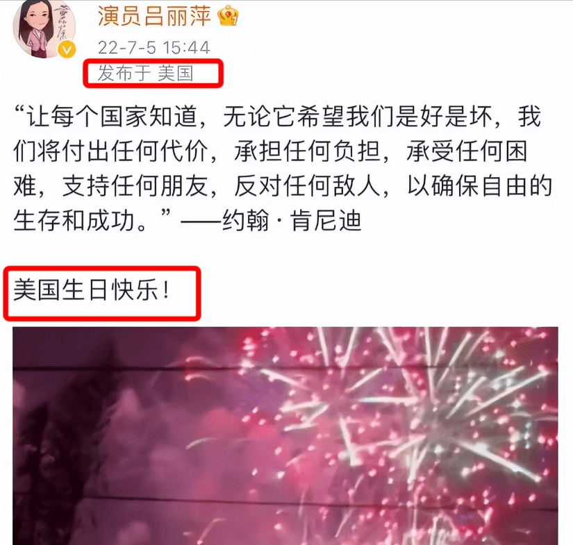 公开发文为美国庆祝生日,赞美其自由、民主等等。还引用了约翰肯尼迪的一句话。