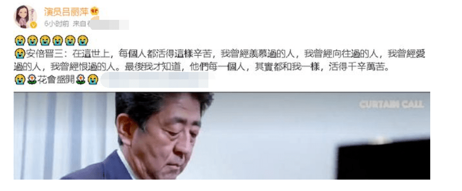 吕丽萍更是发文追悼,用一段文字,配上9个痛苦的表情。