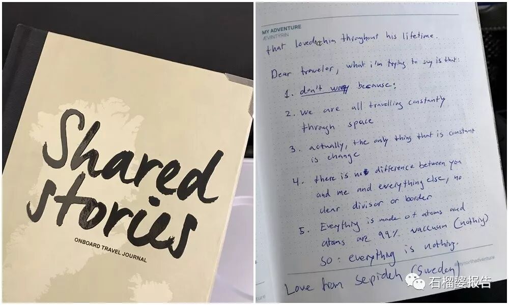 然后每排座位放一本笔记本,请乘客留言、分享自己的故事。