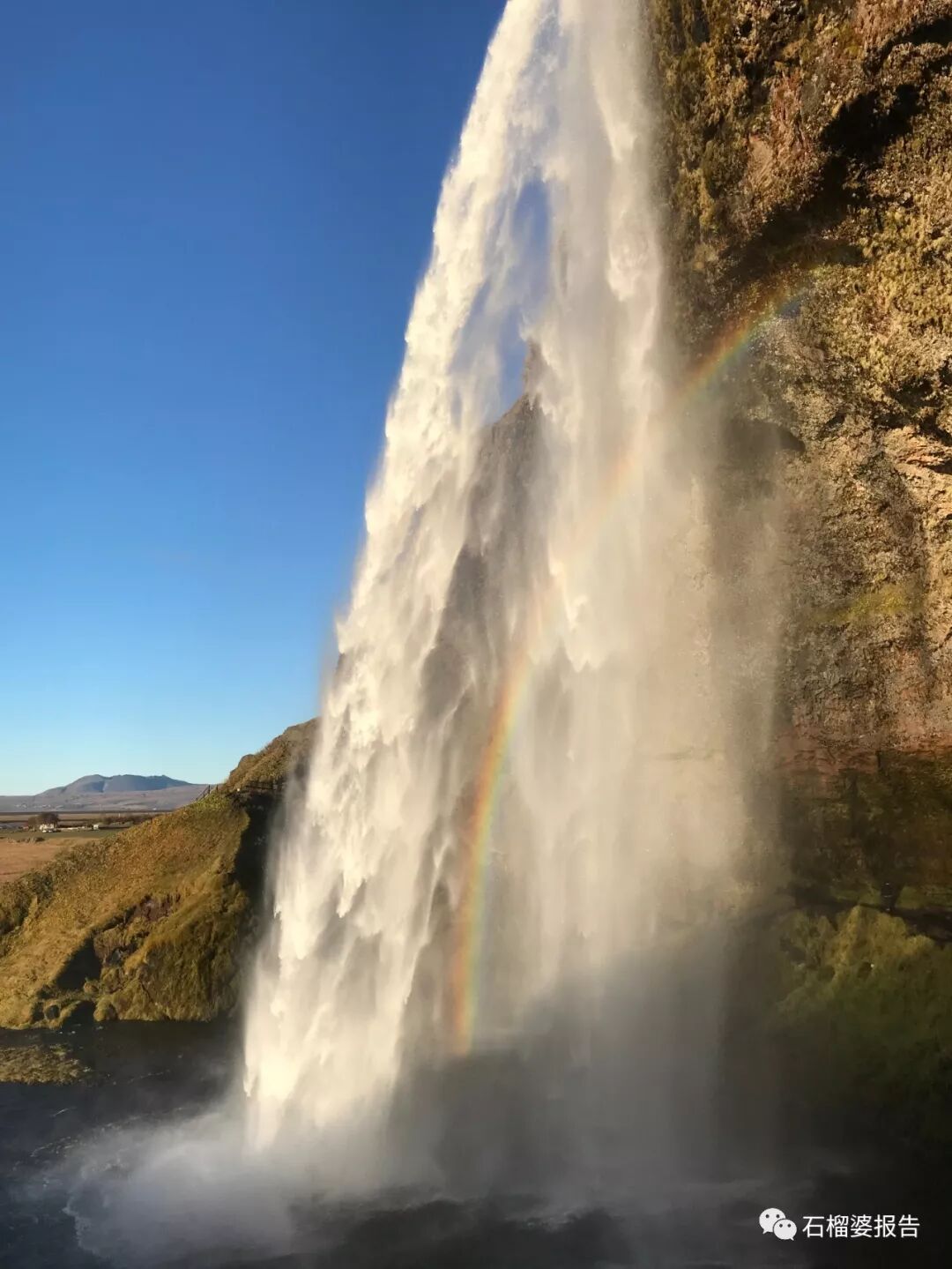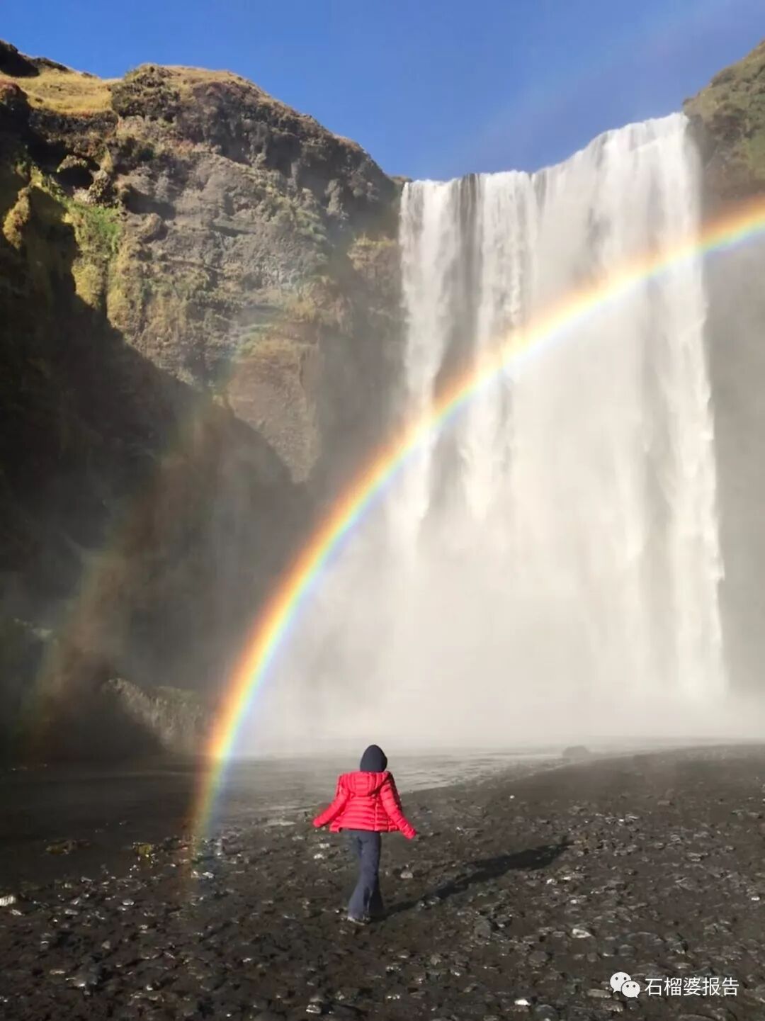 一个叫斯科加瀑布Skógafoss,因为水量够大,碰到彩虹的概率非常高。