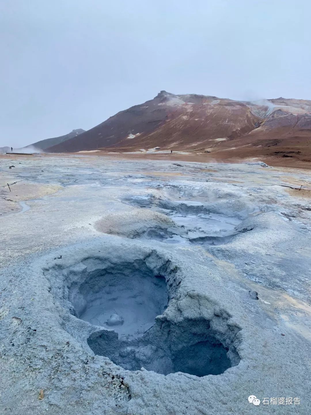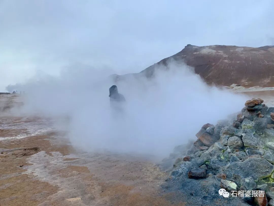 到处是地热散发的烟雾。我给老公拍的这张照片,是不是挺带感?