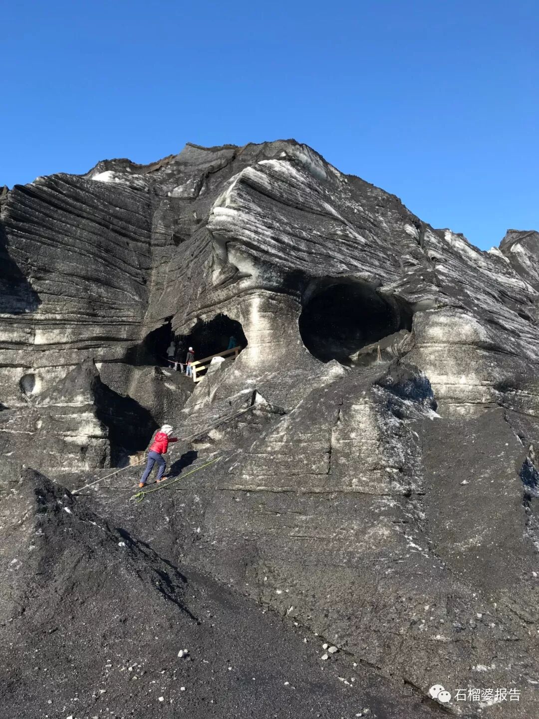 冰川也是黑色的!因为表面覆盖着火山灰。