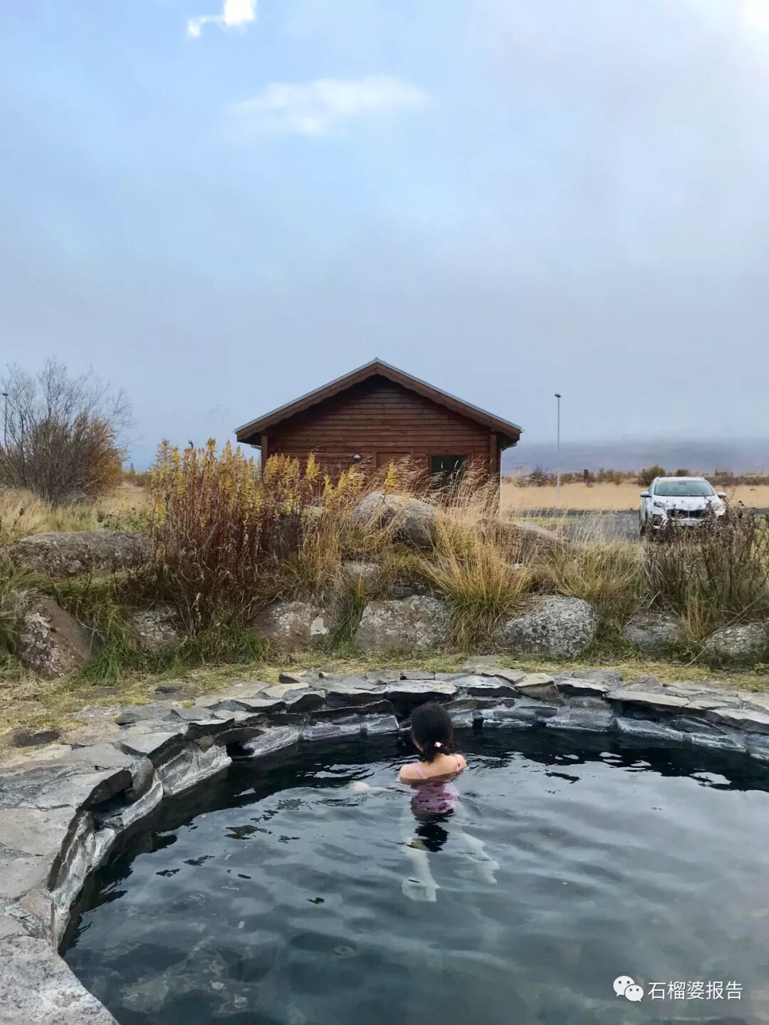 这个旅馆一共只有7间小木屋,中间一个地热温泉。像一个荒凉的世外桃源。