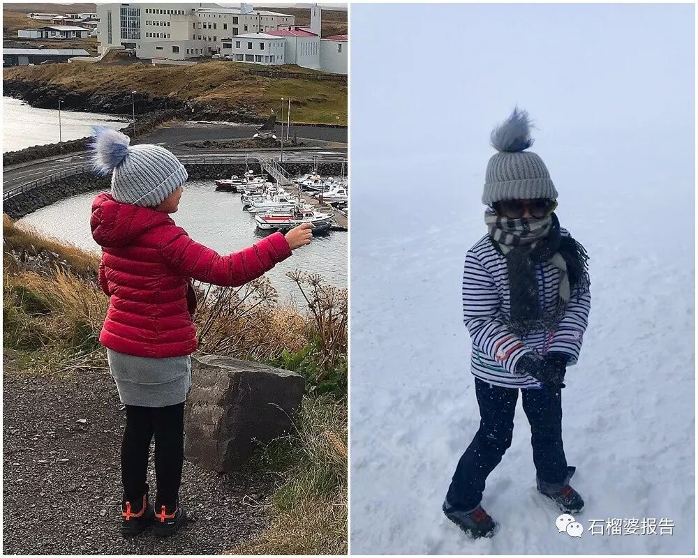 看我给女儿穿的,上半身穿三件:打底长袖衫 + 卫衣/薄毛衣/卫衣裙 + 中等厚度的羽绒服/棉服(不要穿大衣,在冰岛会很奇怪);