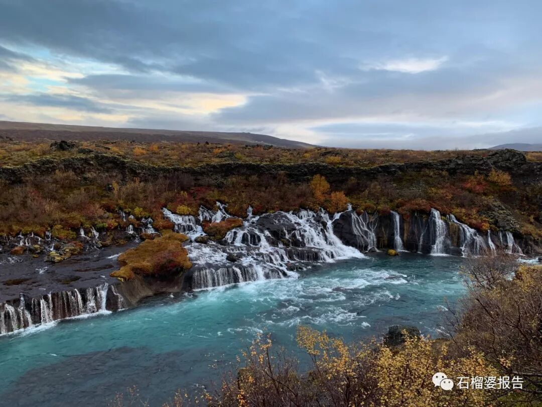 宾馆开出去没多久就是赫伦瀑布Hraunfossar。