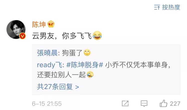 陈坤呢,作为“杠精界杠把子”,直接在底下留言,让张晓晨再多飞飞。
