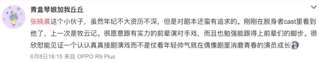 像这个网友说的,年纪不大资历不深,但认认真真接剧演戏而不是仗着年轻帅气就在偶像剧里消磨青春,这是演员的成长。
