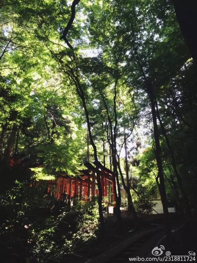 或是在山林里踏着绿荫远足,远远的寺庙建筑让人心绪更加宁静。