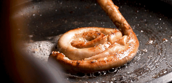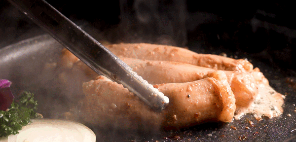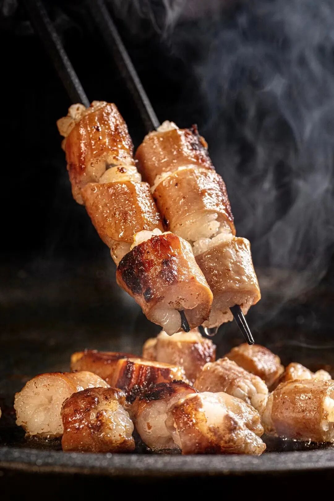 先要用大火把肠里的水分和油脂爆出来,绵软粉嫩的牛肠随高温迅速打卷,等到表面微焦时,转小火翻面慢烤,油脂的香味也随之窜了出来。