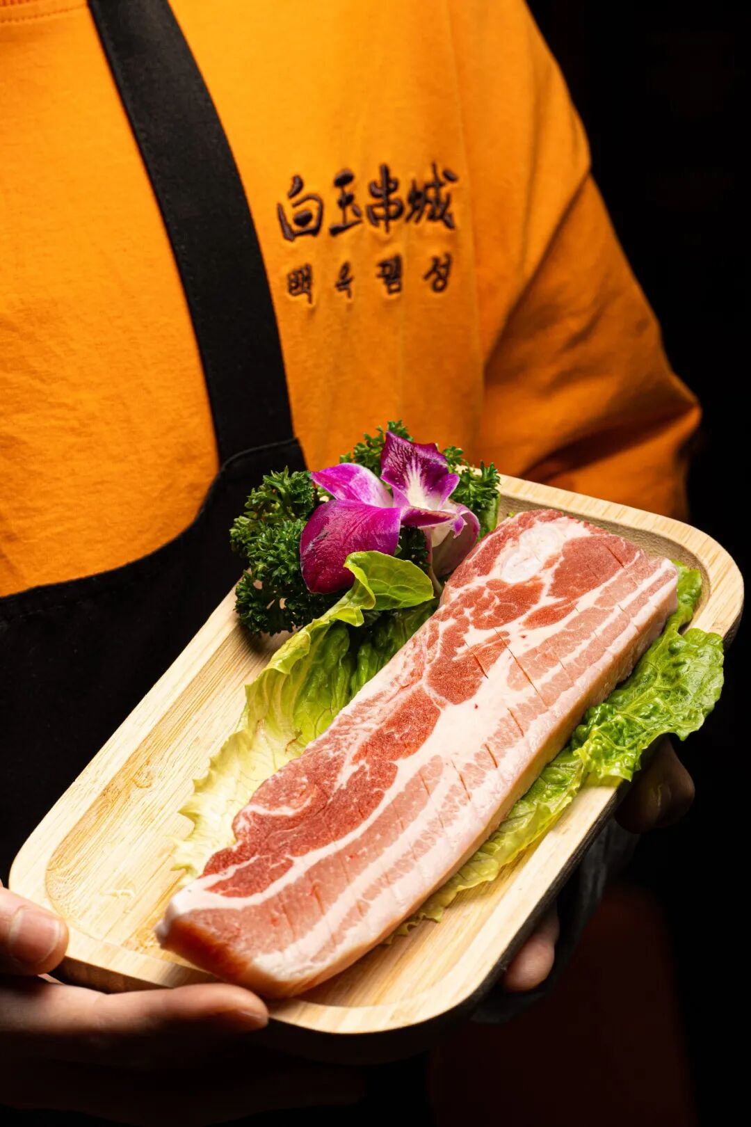 吃烤肉还得整点黑猪肉才舒坦,精选伊比利亚黑猪肉,五花和梅花部分都点上一份,瞧这肥瘦相间的黄金比例,话不多说,坐等开吃!