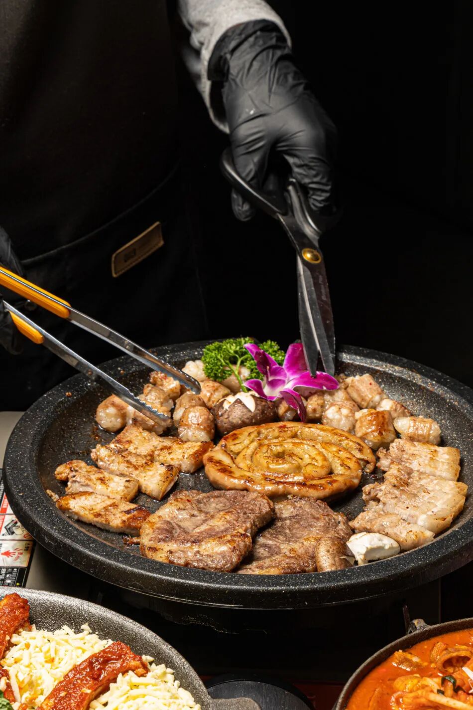 这里的牛肠都是用新鲜水果,经过48小时低温腌制处理,现烤现吃的。看着铁盘里滋啦滋啦的烤牛肠,食欲瞬间被拉满!