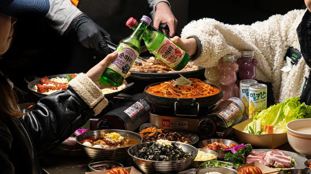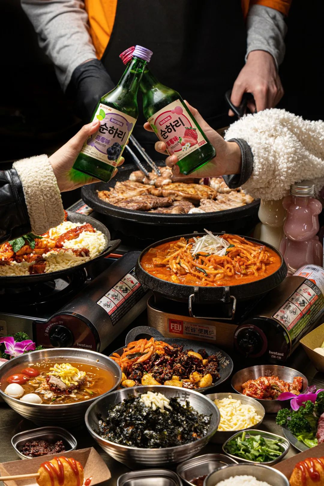 下酒菜也不能少,香辣干煸的牛肺搭配蒜香一起下肚,特别香酥爽脆;泡菜汤也是烤肉的灵魂CP,喝点水果味的烧酒+一勺酸辣汤汁,真是yyds!