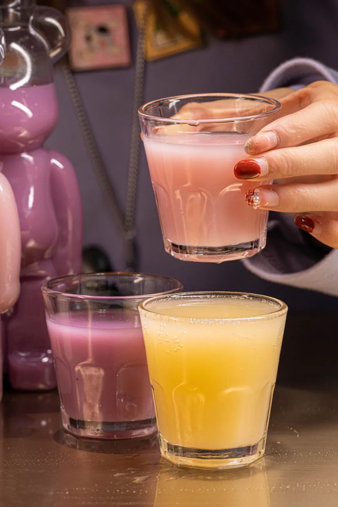 一共有玉米、青葡萄、蓝莓、覆盆子四种味道,喝起来有股甜甜的米香味!爱喝酒的宝子们还可以用青葡萄米酒+青岛试试,听说是老板娘自创的喝法哦!