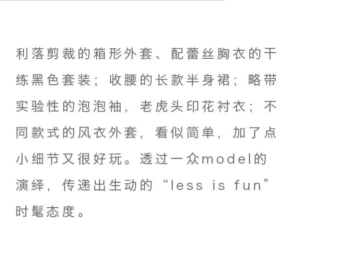 偏爱简约,喜欢充满趣味的日常,这是less眼里的fun friends,而在less秀场头排看秀的明星嘉宾,袁泉、王泷正、Linda、袁冰妍,他们又如何看待“少有趣味”呢?