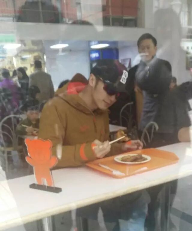 周围全是拍照的粉丝,霆锋还能吃得如此陶醉~