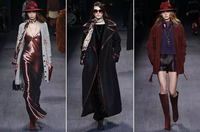 由美国西部夜晚最常见的色调抽象而来的深蓝色、锈红色、棕色和酒红色是本季色彩的主打,几点正红色和丁香紫给整个系列带来一抹亮色。