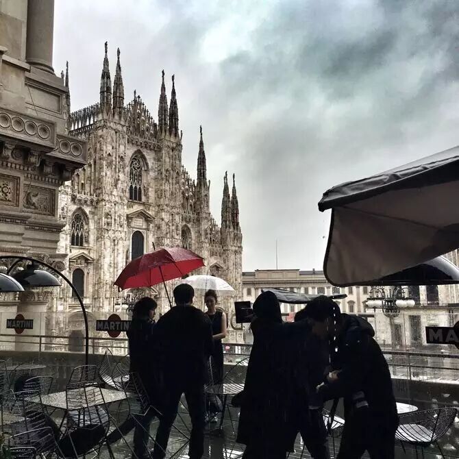 原本以为女明星的时装周生活应该是各种fancy的发布会和party,谁料到每天在秀场之间奔波的同时还要各种见缝插针的拍摄街拍专题。一大早化好妆发我们就冒雨驱车前往位于米兰大教堂附近的酒店及餐厅进行拍摄工作。