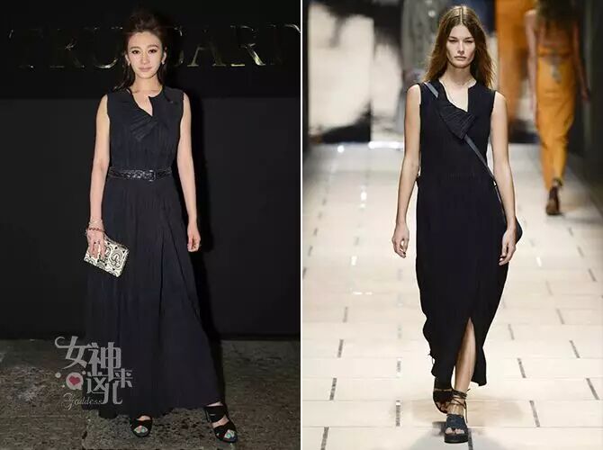 经过几次讨论,小冉在16春夏成衣系列中选择这件压褶皮革连裙。这条深蓝色的连衣裙,虽然使用了较为厚重硬朗的皮革面料,但因其独特的面料处理,却可以呈现出如同绉纱般轻盈的错觉。在大家手忙脚乱选择困难的时候,不得不再次为造型师李小冉的慧眼识珠点赞!