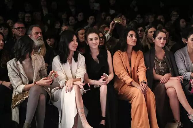进入秀场后,小冉与Linda携手一同入座,快让我们也跟着李小冉一起欣赏Trussardi的最新系列吧!