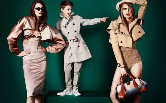 红了之后跟Burberry也一直有合作,包括同小贝家二公子、Kate Moss一起拍广告宣传。