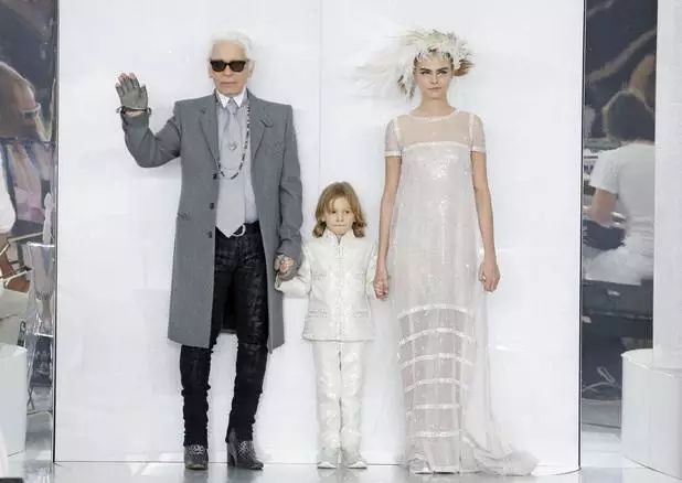 她还深得老佛爷的喜爱,成为在香奈儿秀场谢幕时一定会被牵着的模特。