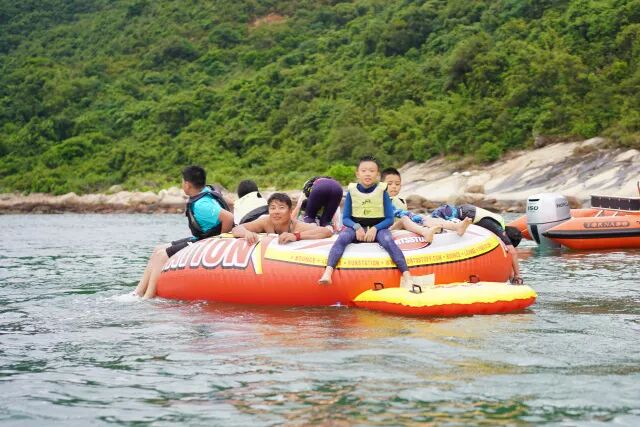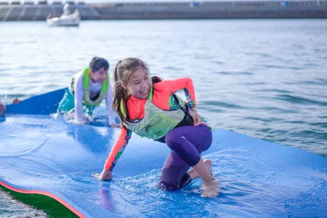 训练结束后的欢乐时间到了,海上魔毯,和小伙伴们一起打水仗,玩游戏~