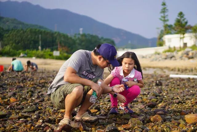 还去了潮间带,在海洋生物老师的指导下认识了中华鲎,寄居蟹,海蟑,塔型螺......拿着任务卡去寻找从未见过的小生物
