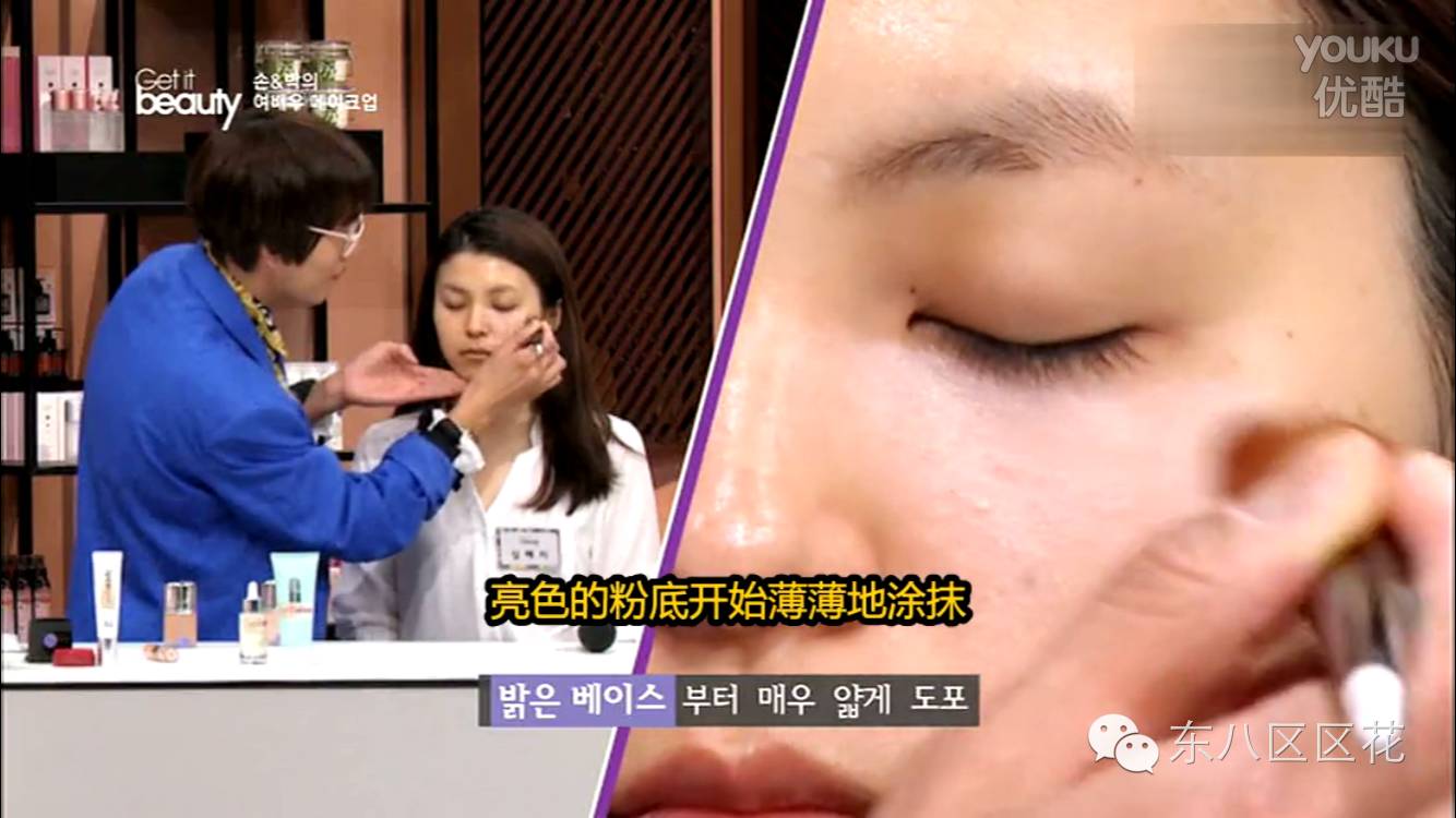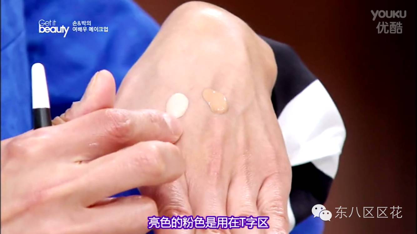 因为化妆前的基础护理很重要,所以全智贤的化妆时间都很长。紧接着就是上底妆,用两种不同色调的粉底,亮色要比自己肤色亮三个度,暗色暗三个度。