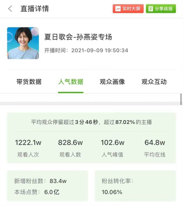 但事实上,她是从未褪淡的。9月9日她在直播平台上举办“夏日歌会”,平台方提前设定,如果点赞次数超过4000万,就可以解锁安可曲目《遇见》。而最终的结果是,一小时内,她收获了接近6亿次点赞。