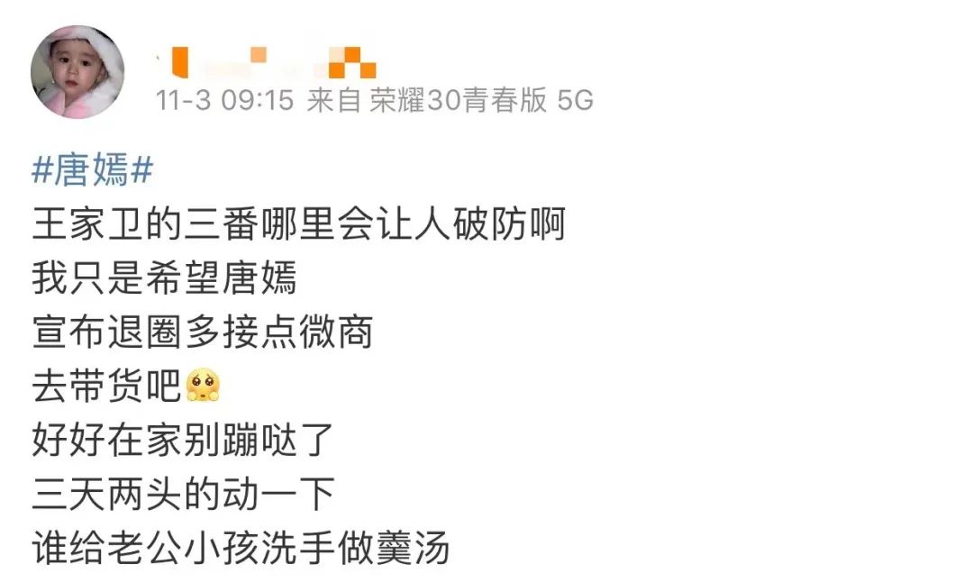 粉丝们的怨言,根本影响不到唐嫣半分,被情绪裹挟而感到受伤的永远只会有粉丝自己。