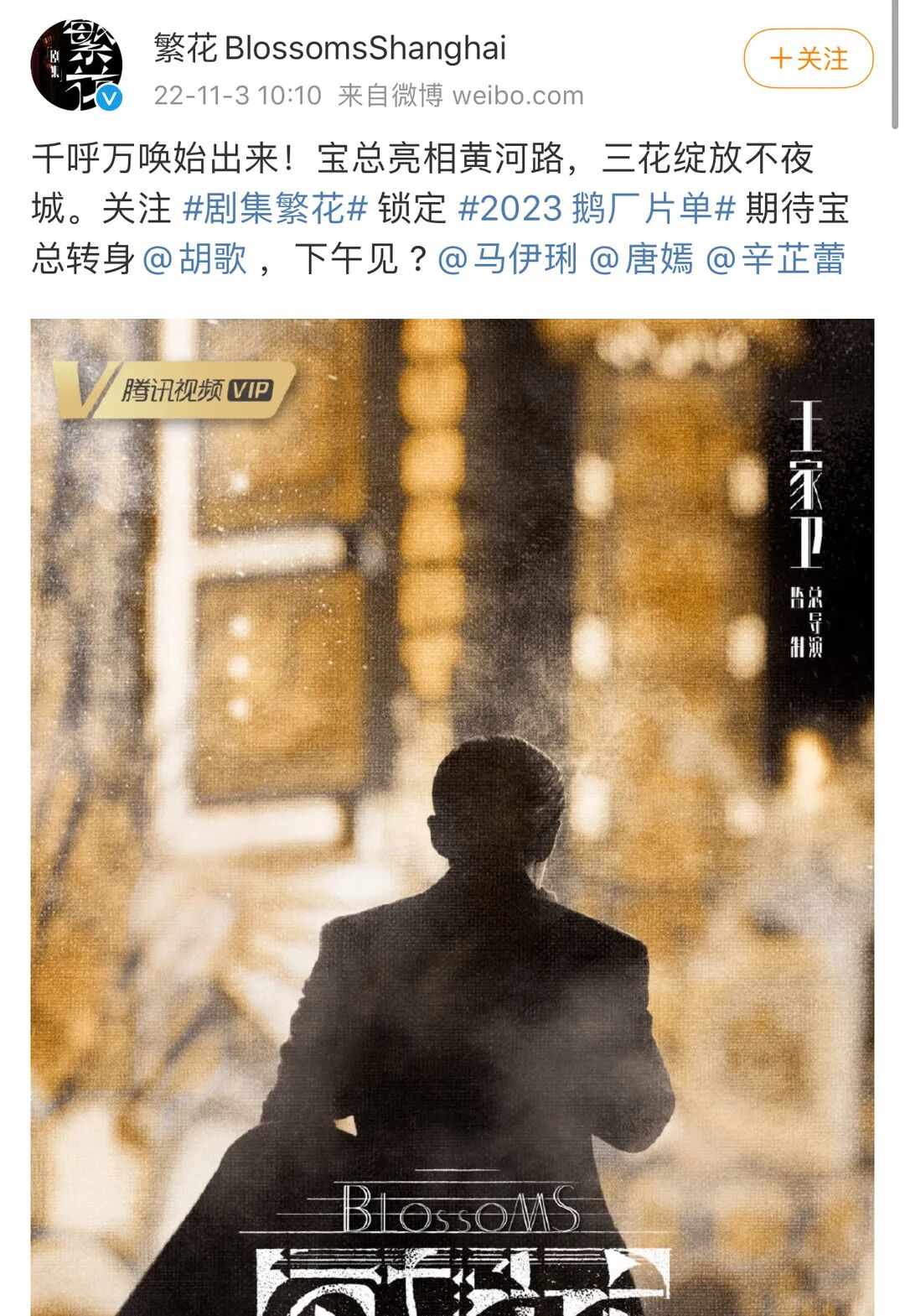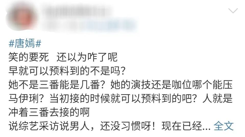 之前王家卫新片《繁花》官宣阵容,唐嫣虽然有幸参与大导的戏,却只捞到一个三番。