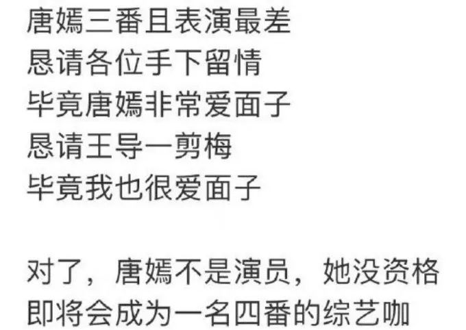 明白了,内在逻辑原来是:唐嫣给我丢人了。