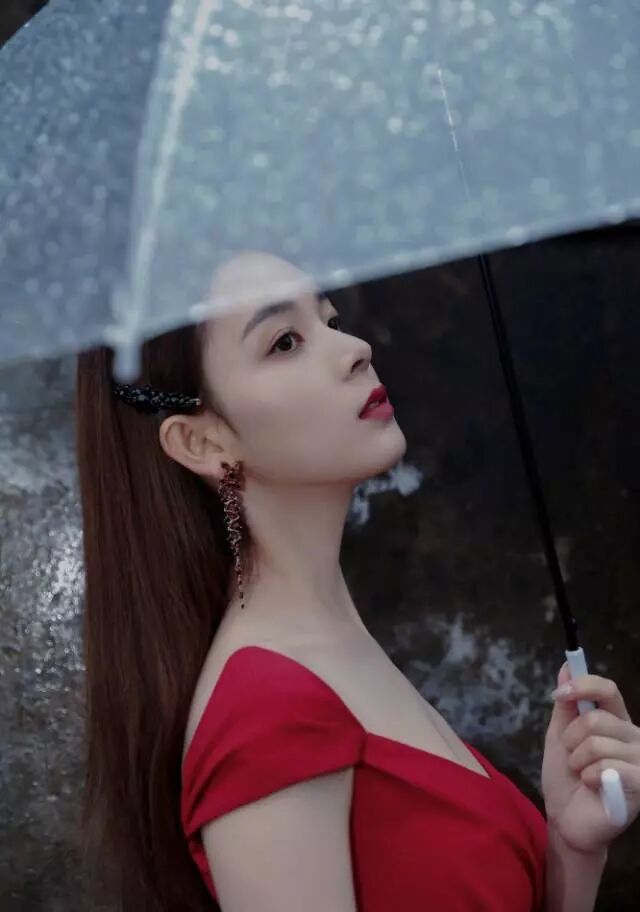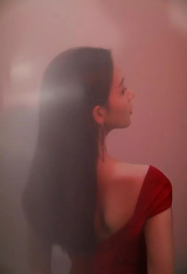 红色简直太适合陈瑶的气质,美艳又不失优雅,灵动而娇俏,尤其是在这朦胧的背景下,更是如同仙女般明媚动人,灵动妖娆,