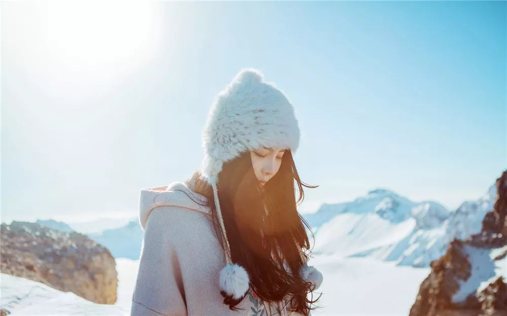 两颊和小鼻子冻得粉扑扑的,看着可爱又可怜。