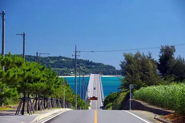 连结伊良部岛及宫古岛之间的伊良部大桥,是日本目前最长的公共道路,据说这里最美的时刻是黄昏,非常适合开车兜风或骑着单车前往;